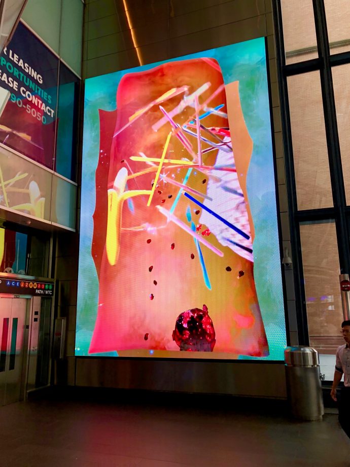 This is the latest digital art piece running at the busy Fulton Center Transportation Hub in Lower Manhattan.