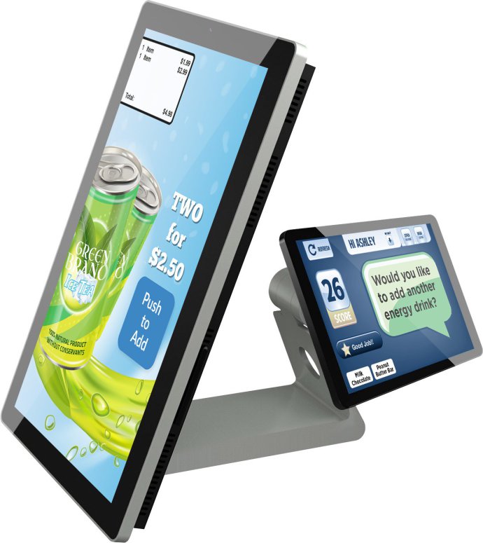 The LIFT platform is built around a customer-facing touchscreen display that integrates with existing POS system and loyalty programs. The pitch is that sales are lifted by as much as 25 points, with promotions triggered on the screens as products are scanned at checkout. Shoppers can accept and add promoted products at that big buying moment.
