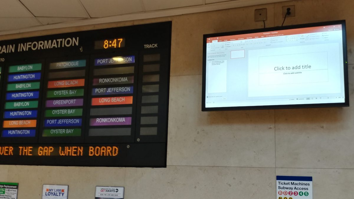 Here’s an entirely new kind of digital signage fail – spotted by a reader this morning at the Atlantic (Brooklyn) Long Island Railroad (LIRR) station.