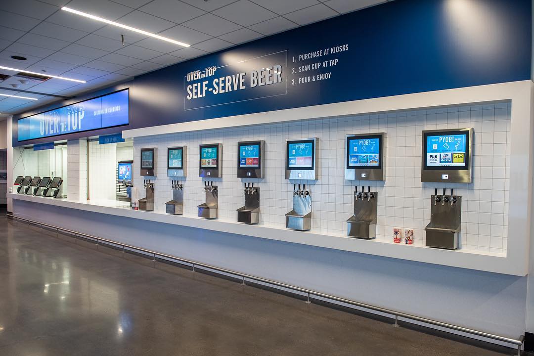 - At the Over the Top stand (section 417), a 21-tap self-serve beer wall has been installed to allow guests to pour their own beer from a wide selection of brews.