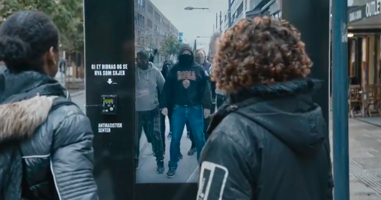 This is an interesting mash-up of augmented reality, sensors, contactless payment tech and digital OOH displays executed by JCDecaux in Norway, for the Norwegian Centre Against Racism In Lillestrøm.