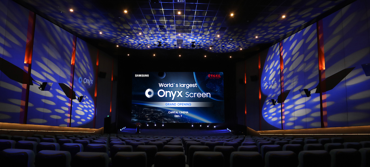 But Samsung’s Onyx LED screens have now been installed around the world, not only in the motherland of Korea but through partnerships with Pacific Theatres in Los Angeles and Arena Cinemas’ Sihlcity theater in Zurich. Now the product is in a second generation – with a 14-meter wide, 3D-ready screen that just lit up in Beijing, at Capital Cinema.