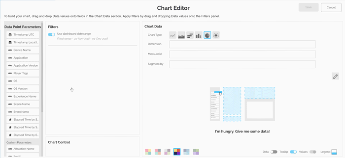 On the analytics side, project owners can use a drag-and-drop chart builder – inspired by the top solutions on the market, simplified for the novice but powerful enough for the expert – to create visualizations based on any of 30 classic chart models. After the application of extensive customization options, charts are then compiled in one or more dashboards. Dashboards are a shareable medium for distributing interactive charts, each of which is directly connected to an Amazon AWS-hosted Data Hub, ensuring real-time updates with no more than a two-minute delay from data collection to chart appearance. Dashboards can be shared via URL or iframe, enabling agencies and integrators to manage multiple accounts with uniquely different data sets and needs.