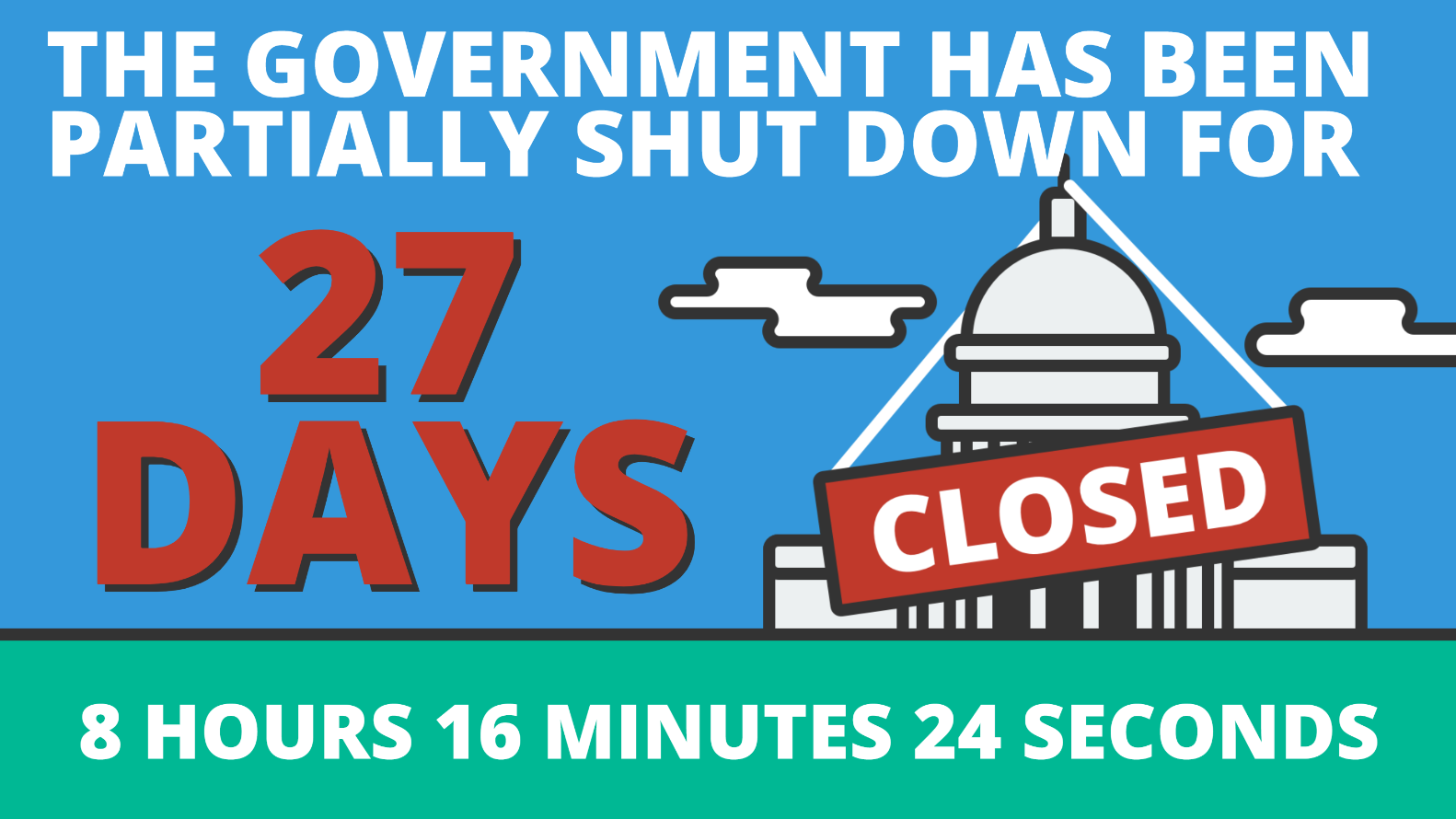 One (main art) is an HTML5-based template that puts a dynamic counter on how long the government has been shutdown as politicians in Washington bicker, and 800,000 workers go without wages.