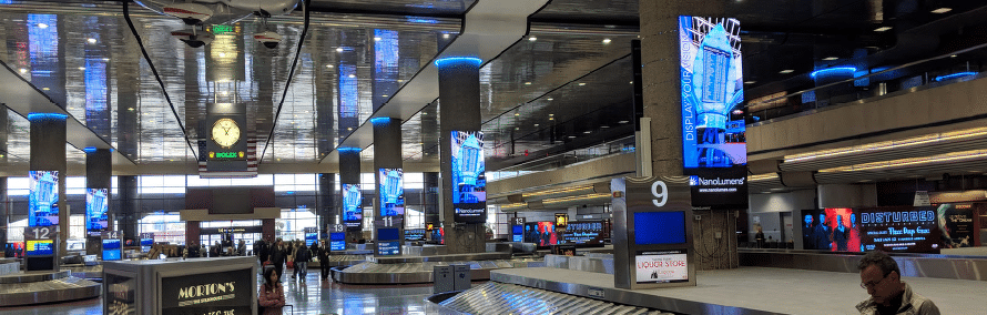 “Most of the advertising that Lamar had in that baggage claim area needed to be constantly updated as the shows and events in Vegas frequently change. Removing static banners and sign graphics and putting up new ones was an additional cost for Lamar’s advertisers,” says Dave Merlino, NanoLumens Vice President of Sales. “Replacing those banners with NanoLumens LED displays empower Lamar to offer their clients a world-class digital advertising platform whose content can be changed instantly to meet the needs of its advertisers.”