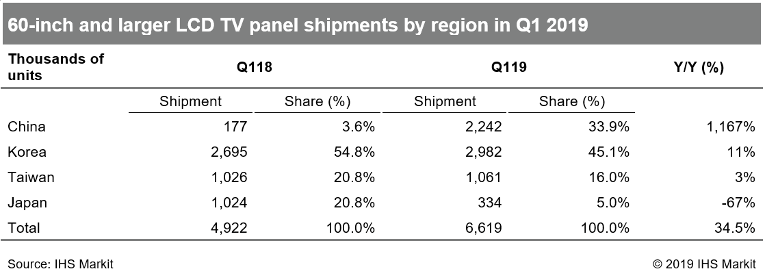 South Korean panel makers still accounted for the largest share in the 60-inch and larger LCD TV panel shipments, with a 45.1 percent share in the first quarter. However, Chinese panel makers’ share in the large LCD TV panel market is expected to continue to grow.