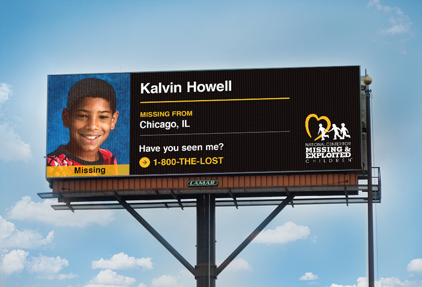 Organized by the Out of Home Advertising Association of America (OAAA), and produced by Grand Visual, the campaign publishes the names and photos of missing children and raises awareness of the number to call for sightings; 1-800-THE-LOST.
