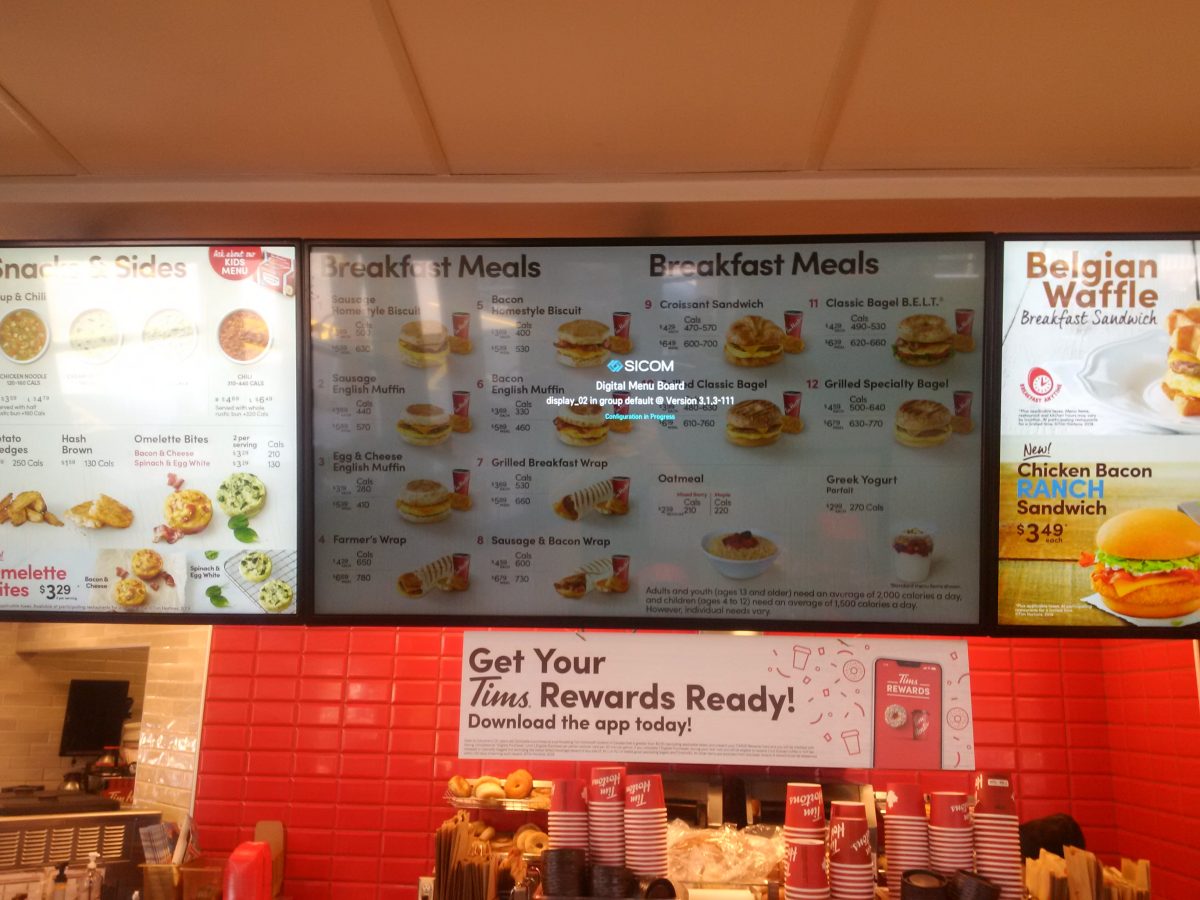 A reader sent along a couple of photos from a digital menuboard set-up at Tim Hortons. Stuff happens, things hang, but it happens a LOT lately at the Canadian coffee chain, which would have something like 20,000-plus screens in stores across the country.