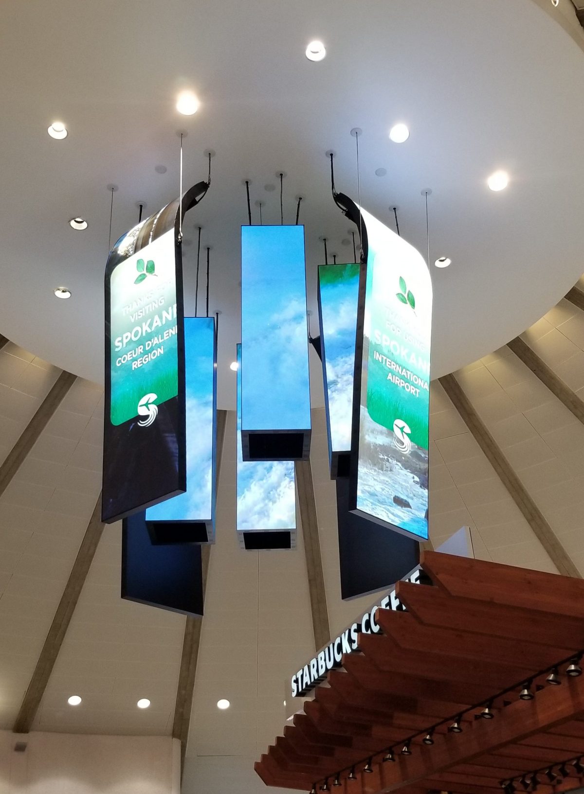 This is an LED chandelier in the rotunda of one of the main post-security concourses at Spokane International Airport in eastern Washington state.