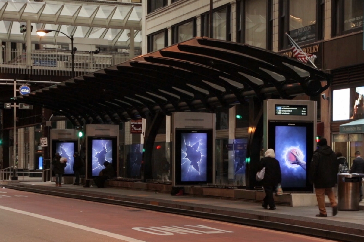 Says Decaux: On the LIZ, a basketball flies from one screen to another, appearing to ‘crack’ every single panel on its journey into a player’s hand at the opposite end of the unit. The Loop Immersion Zone platform is optimal for dynamic story-telling, as demonstrated by the Demons’ use of the elongated space. This ad successfully captivates passerbys by demonstrating digital’s creative capabilities.