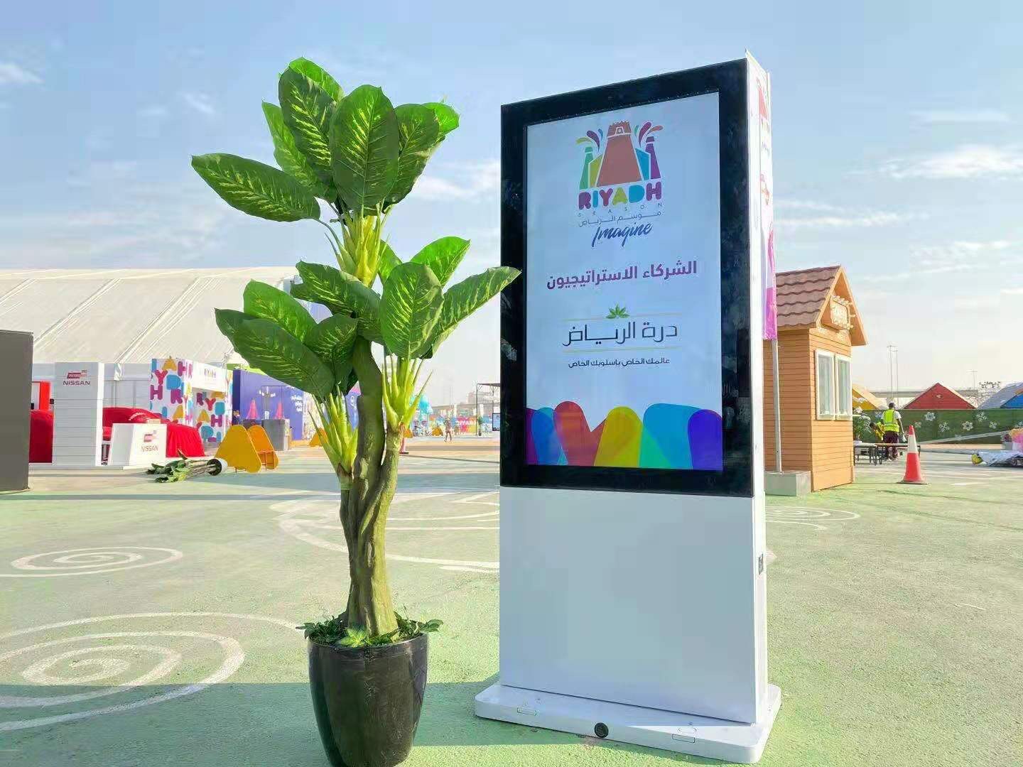 Developed by Saudi-based Faden Spectrum Optoelectronics – a digital signage solutions provided based in Riyadh – the screens are LED-lit high-bright LCDs that have built-in air conditioning units and special anti-glare glass. AC and anti-reflection glass would be pretty much the only way display units could survive the thermal heat load of that country, and cut through the bright sunlight. The units are rated for up to 50 degrees C, which is 122 F, or in simple terms, insanely hot.