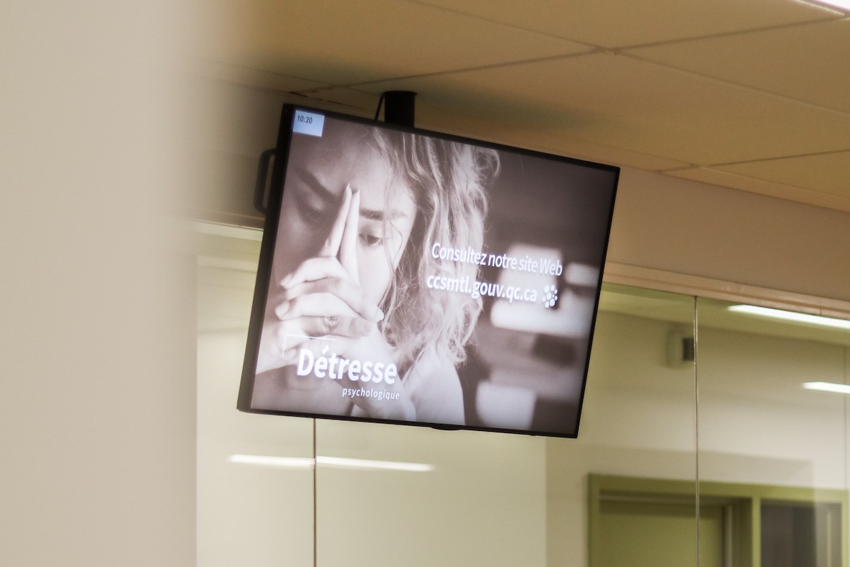This is one of the screens running for the City of Montreal’s Integrated University Health and Social Services – four care organizations spread out across 43 locations.