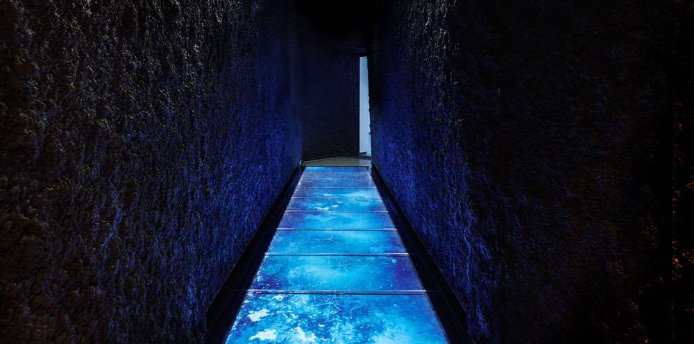 It is a store that is largely inventory free. The mall facade looks like a frozen rock face, and shoppers slip through a crack in it to enter the store, walking along a narrow passage with a floor that looks like crevasse ice … and virtually cracks from the shopper’s weight.