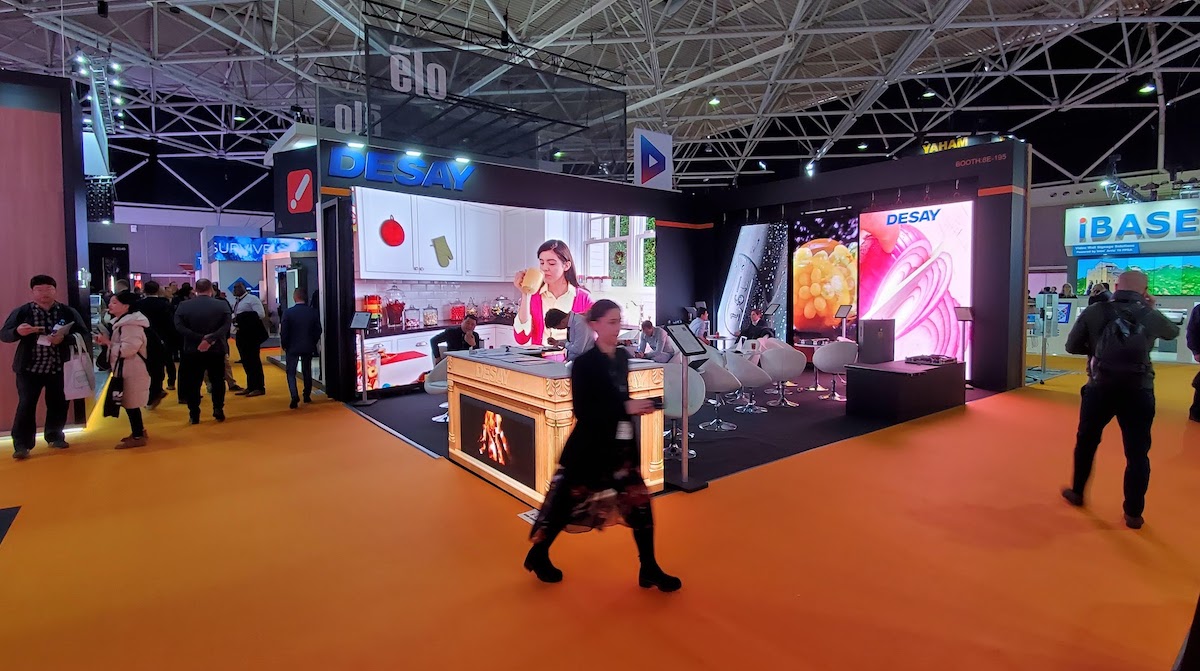 It is remarkable how many companies seem to be in the outdoor LCD display business – there has to be at least 20 companies at ISE all showing various iterations of a super-bright display in a metal box, for advertising street furniture, wayfinding kiosks and drive thru promo and menu screens.