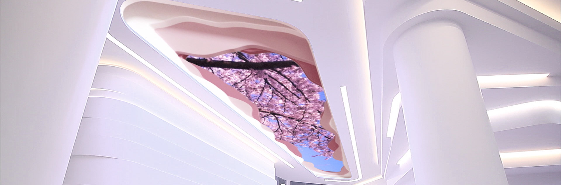 The concept and design was by the architectural firm DTACCarchitects and the display tech up in that light cove is from FlexLedLight.