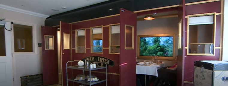 The Gateway Care Home spent about three months constructing its Gateway Express dining car, with its own ticket office. Residents get a first class meal as they watch the virtual countryside go by.