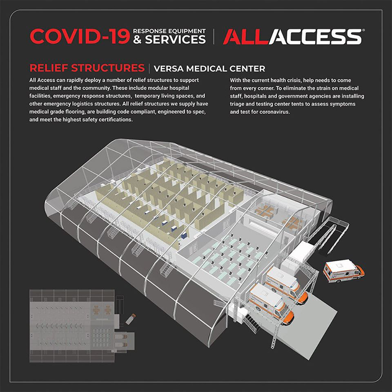 “Our goal has been to shift focus from being dedicated to the live events space to how can we support emergency responders, health departments, etc.” explains Alexander Donnelly, VP of Corporate Development at PRG. The company is making much of its inventory available to local entities at its 31 depots around the world.