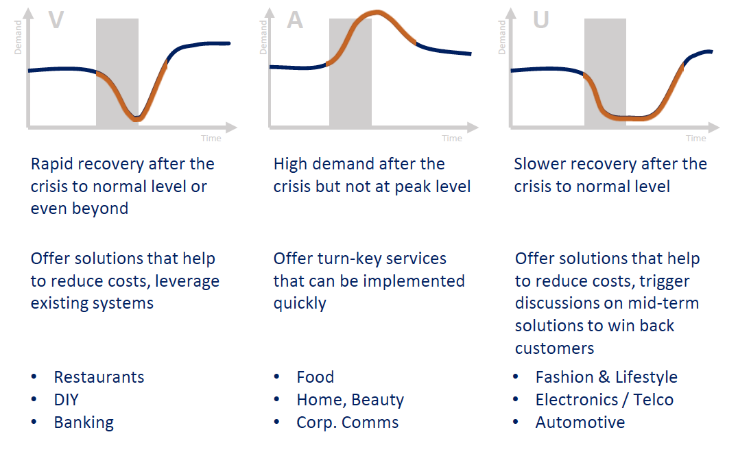 The idea is that different things will likely happen for different types of companies and verticals as the pandemic slows and (hopefully) goes away. Restaurants will come back, though not al of them, and operate in much the same way, while other kinds of verticals like airlines, rail services and their hubs may be very different after all this.