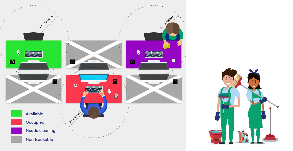 - Purple means the desk needs to be cleaned by a cleaner.