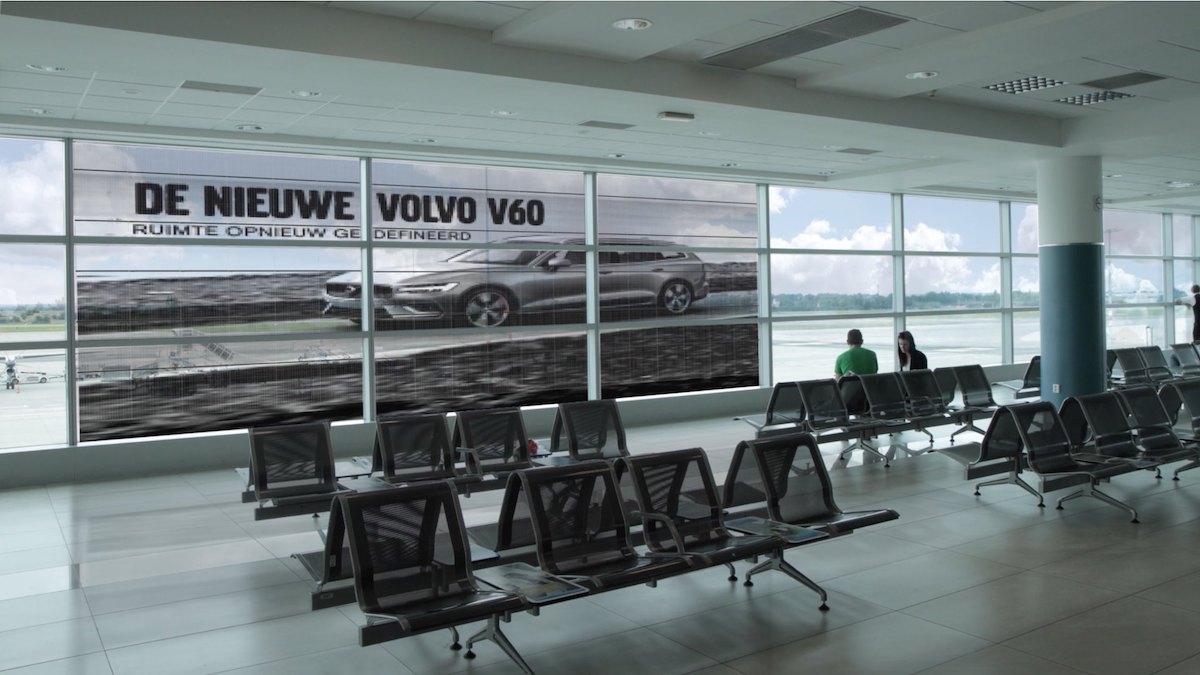 The truly interesting thing here is that it can help places like airports and convention centers, which also tend to have big glass curtain wall windows, reduce energy costs, make some seating areas usable even in direct sunlight, and take on brand advertising that maybe is not a profit center, but offsets or covers the cost of the glare control solution.