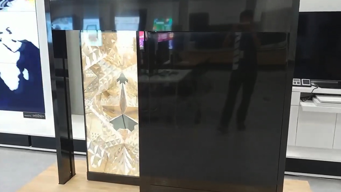 An OLED is super-thin and self-emissive, so it does not need a backlight (like LCD displays) to illuminate the pixels. LG says multiple OLDs could be tiled for a larger access door.