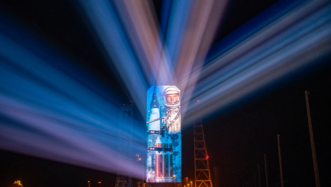 The project used Christie D4K40-RGB’s all-in-one projectors, set up in a back on a rental truck. The rocket was supposed to launch Saturday but was scrubbed in the final seconds countdown for technical reasons.