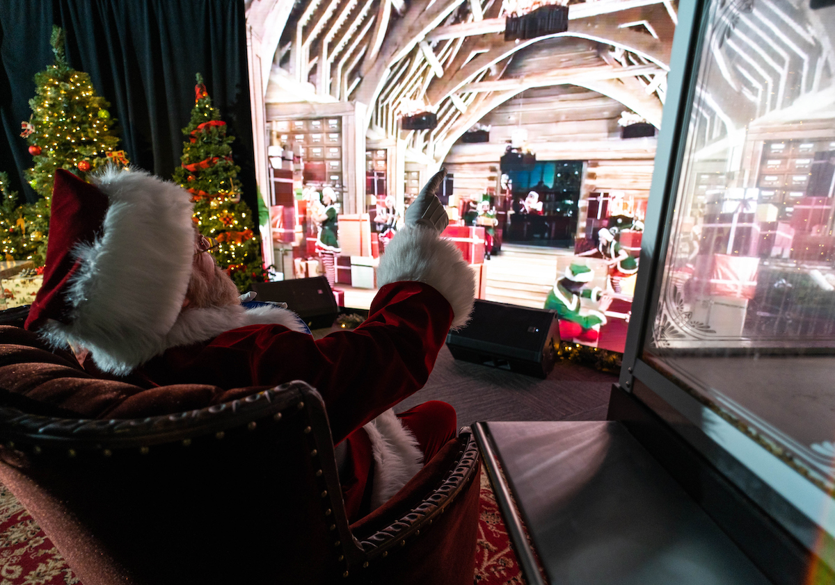 “With our virtual Santa experience, we would work with each client to build a completely custom, high-resolution playlist of pre-recorded Santa videos,” continues Anholzer. “Using a technical set-up that includes an LED video wall and an audio package, families can then can sign-up for a specific time and use an iPad controller to select their desired Santa experience. Once the video is selected, a 4-minute escape into a new realm will begin followed by a family photo op with Santa himself.”
