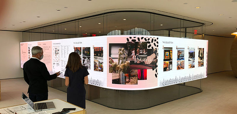 “To that end,” says a NanoLumens mini case study, “visitors receive an innovative and boundary-pushing experience from two NanoLumens 1.56mm Nixel Series Flex displays designed to virtually transport them across a dynamic urban neighborhood, featuring state-of-the-art office space, luxury apartments, a boutique hotel, and two acres of thoughtfully designed open space. “