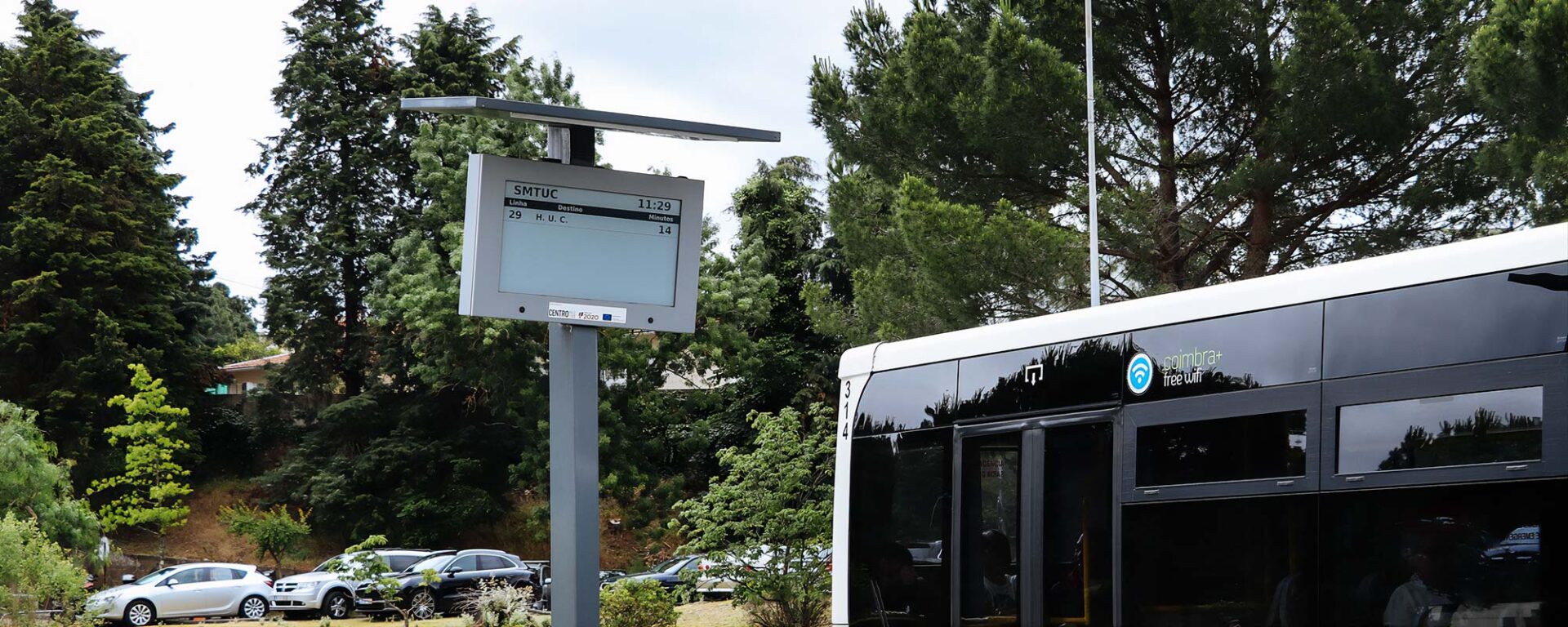 This is one of numerous solar-powered, off-grid e-paper transit information displays in the Portuguese city of Coimbra.