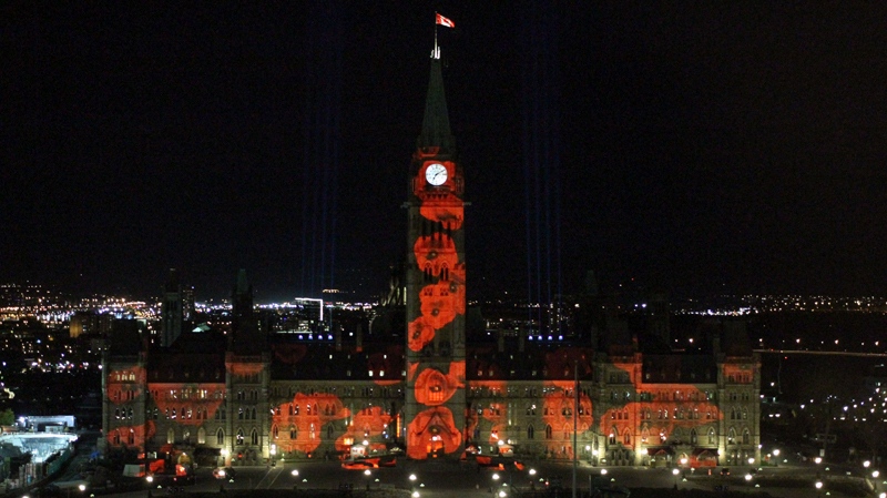 117,000 poppies, one for each of Canada’s fallen since the beginning of the First World War, are projected on Centre Block on Parliament Hill in Ottawa. #CanadaRemembers pic.twitter.com/8GBxhKSn4G