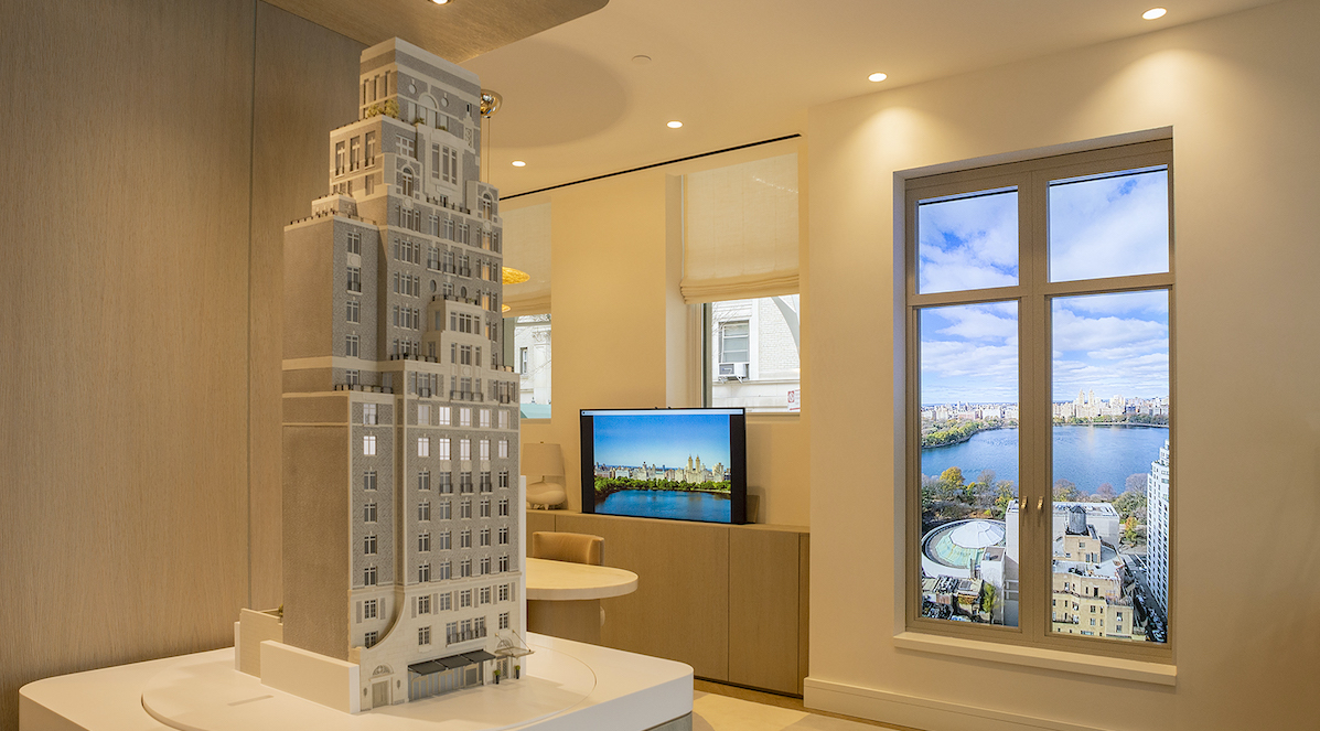 Engineered by the Duggal Inno Lab, the display shows a live stream of Central Park from a 4K camera mounted atop the building, with real window mullions adding to the effect.