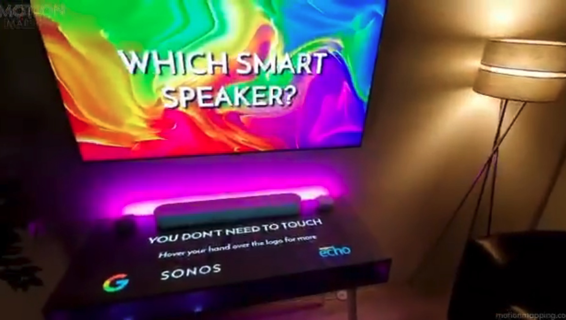 The company used an overhead Epson LightScene projector – those are the ones that look a bit like track spotlights – and sensors to market a Sonos audio product, in tandem with an LCD screen.