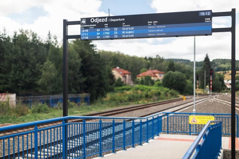 These are images from train station platforms in the Czech Republic that are using fine pixel pitch outdoor LED for departure time displays.