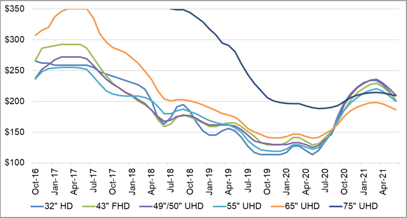 Graphic: LCD TV Panel Prices January 2020 – June 2021 – Source: DSCC