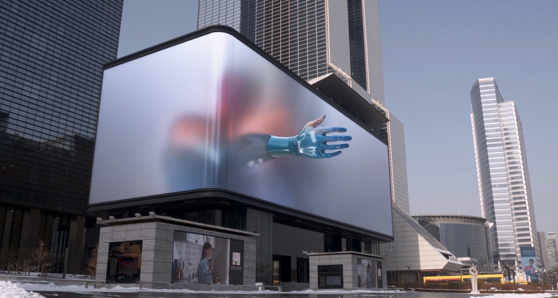 This is the very latest public art piece developed for that big wrap-around Samsung LED display in a Seoul shopping district.