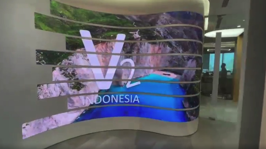 It is in the lobby of the Jakarta-based AV systems integrator V2 Indonesia, and is using the flexible product from Hong Kong-based Lighthouse.