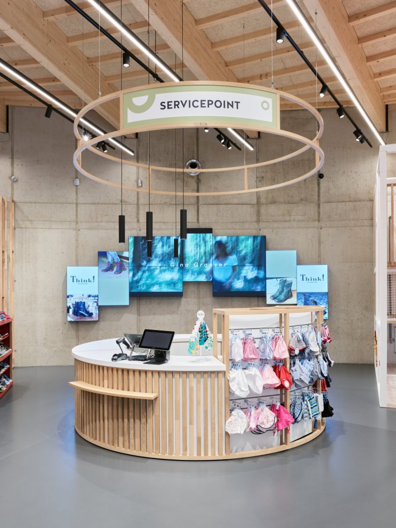 Designed by umdasch Store Makers, the legero united “shoemakers outlet” puts four brands – legero, superfit, VIOS and Think! – under one new roof in the circle-shaped store.