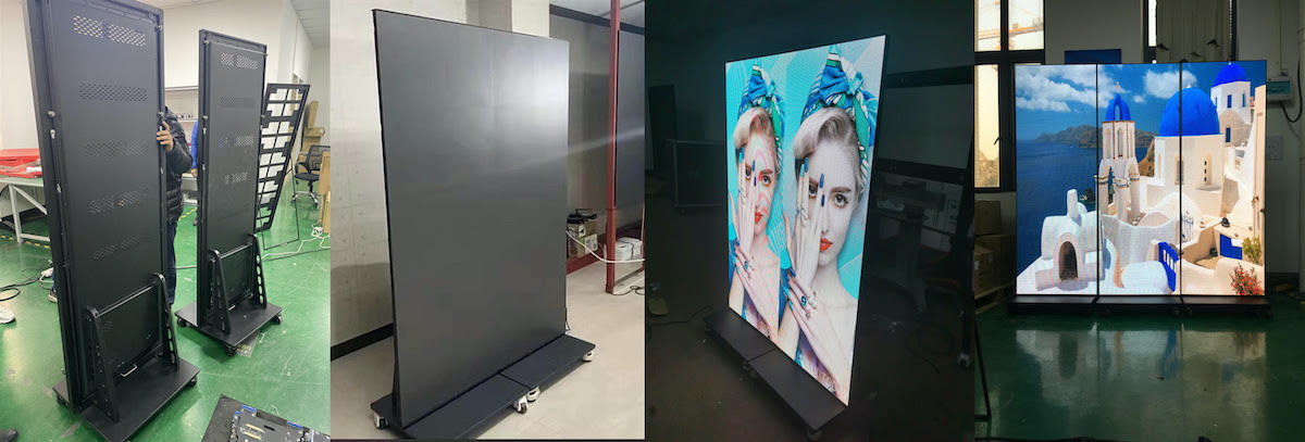 The displays are also super thin, come on rollers and can be joined to create a larger visual surface. There seems to be gaps with one of the images and none with another, so I am guessing the gaps are intentional to show how these things join up.