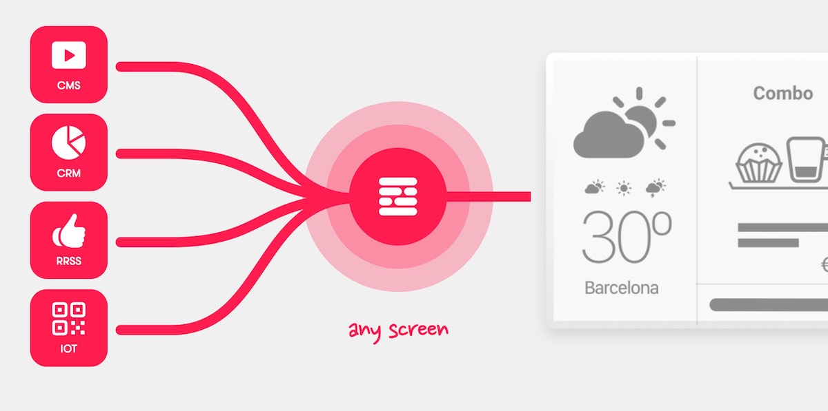 It’s that last one that interests me – micro-applications that run from the platform to change and/or update content automatically from an external source. Nsign.tv says it is already in use by customers such as the supermarket chain Bon Preu, or the Mexican cinema chain CinĂ©polis (the fourth largest in the world in terms of number of theatres and the second in terms of attendees).