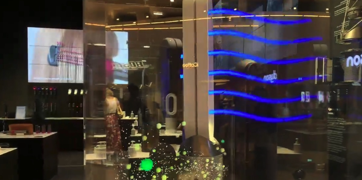 “We decided to combine HYPERVSN holographic displays into an actual physical Dyson Purifier showcasing with 3D holographic animation how it captures potentially harmful pollutants and automatically cleans a whole room with clean fresh air flowing out of the device.”