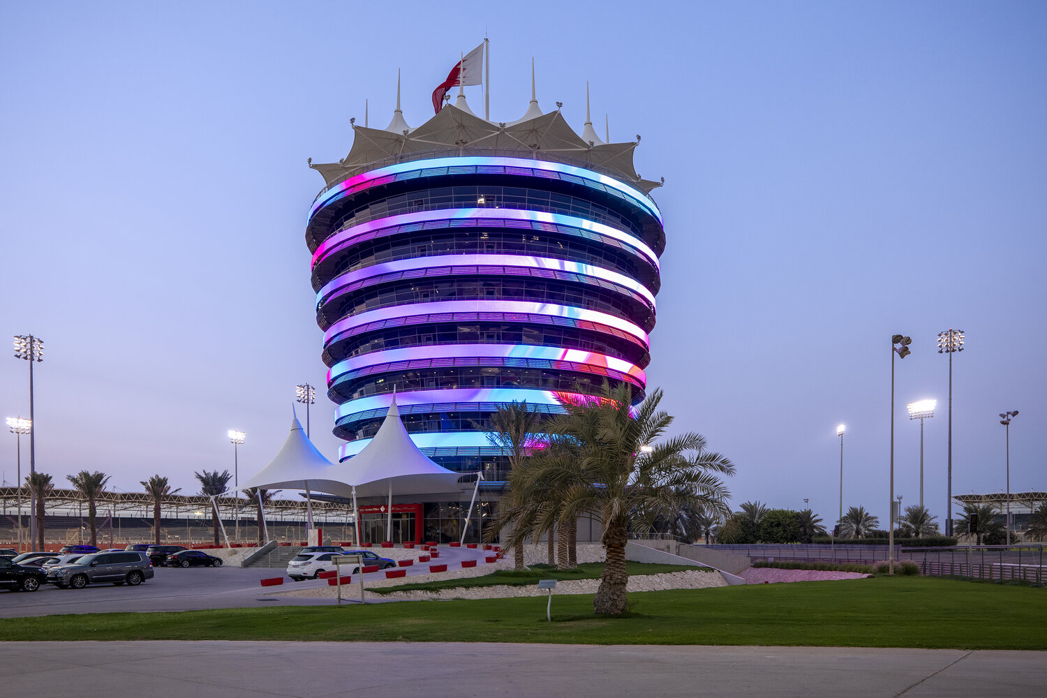 Bahrain’s F1 Track Wraps Famed Tower In 360-degree LED Rings