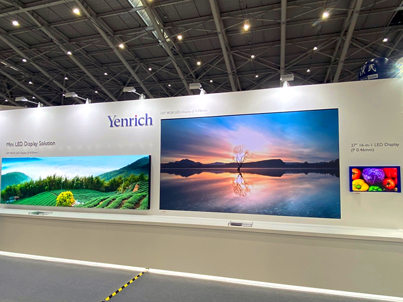 Lextar and Yenrich Technology – two of the Ennostar Group’s subsidiaries – showcased a 16-in-one mini-LED display package featuring a small pixel pitch of 0.46mm (P0.46), making it the premier ultra-fine pitch product currently available in the industry. As for LED display modules, the two companies co-debuted a mini-LED display module series featuring a pixel pitch ranging from 0.78 to 1.25mm, demonstrating an LED display lineup including 54-inch, 135-inch and 147-inch screens.