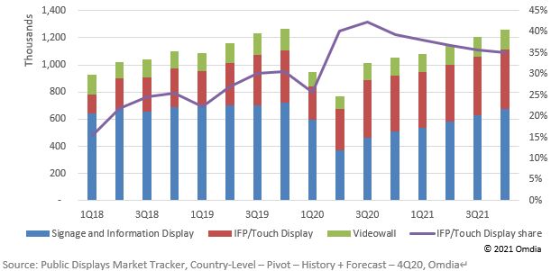 The reason for growth in IFP/Touch displays during the pandemic is due to the expansion of non-face-to-face systems seen throughout the world. It has widespread use based on various verticals, but are more predominant in the retail (with KIOSK), classroom (with videoconferencing), and conference room (with hotdesking) applications.