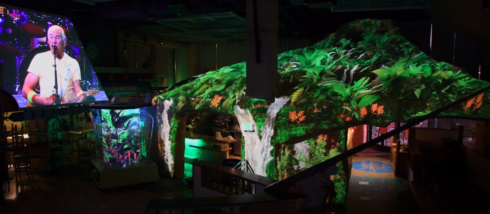 This is inside the Margaritaville on the Las Vegas Strip, which has a new projection-mapped and display show.