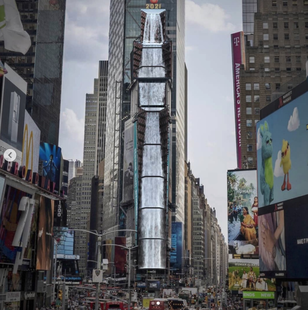 I’ve also learned, from d’strict, that another interesting creative work involving water visuals will launch next week on another giant board in Times Square, right after the other media art campaign winds up.