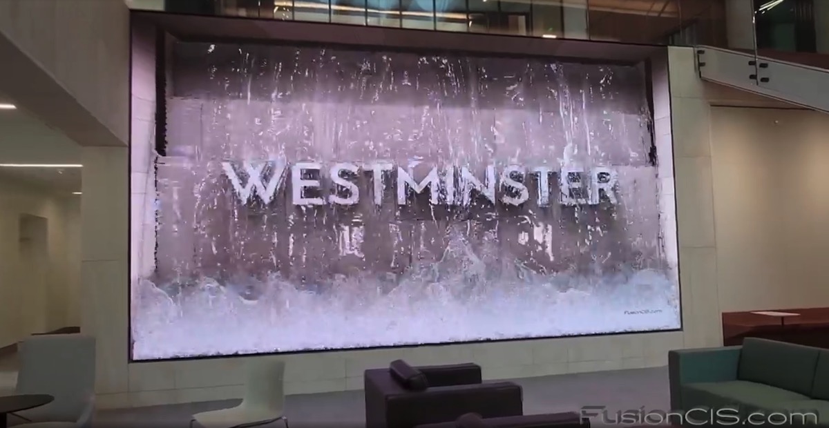 It’s a BIG fine pitch LED video wall in the new common area of a Christian K-12 school in Atlanta – albeit a private school that charges more than $25K a year in tuition and has four full-time staff working on “giving” initiatives from parents and alumni.