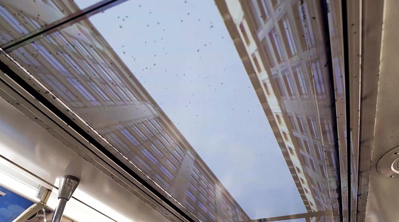 Suppose you could sit in a subway car, look up at the ceiling, and view the passing scenes at street level.