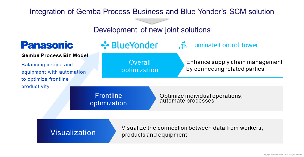 The acquisition accelerates Panasonic’s and Blue Yonder’s shared vision for an Autonomous Supply Chain. By unifying Panasonic’s sensing technologies and edge devices with Blue Yonder’s AI/ML-powered planning, execution and commerce solutions, companies can create smarter and more connected e-commerce strategies, retail stores, warehouses, transportation, and workplaces. This unique end-to-end offering provides customers with unlimited visibility, control, and orchestration, allowing them to pivot operations in real-time, provide superior customer experiences, and deliver more profitable business outcomes.