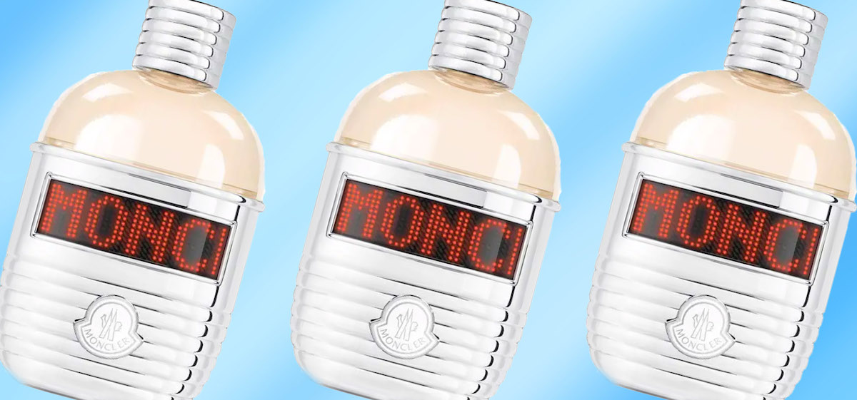 The Italian Skiwear brand Moncler has resorted to the gimmick of putting what amounts to a low-tech digital sign on the bottles of its new fragrances for men and women.