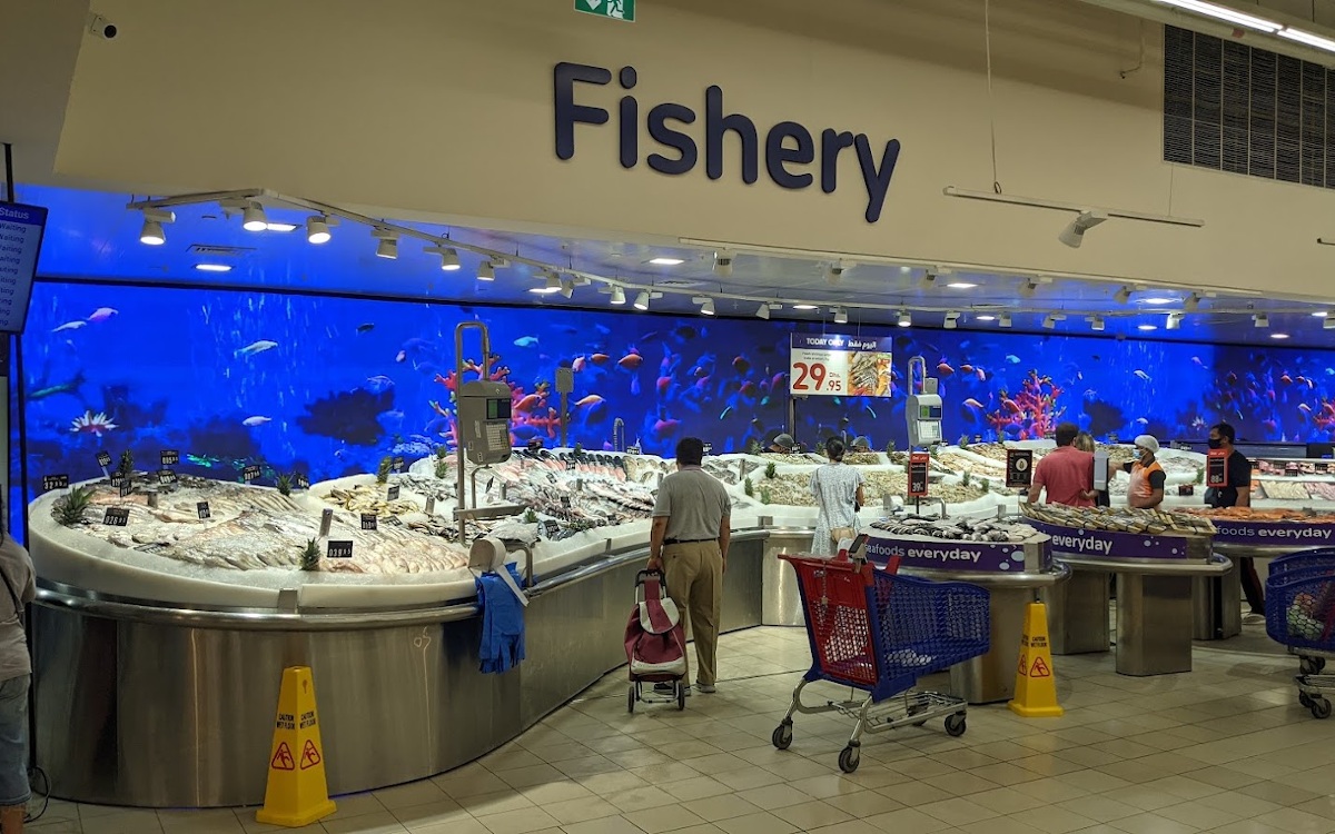 We’ve see fine pitch LED turn up in C-stores, sports bars, at casino swimming pools and even in parking garages. Now we can add the fish counter at a grocery.